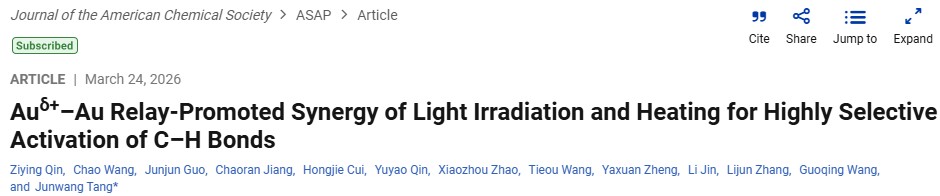 Our group published a research paper in Journal of the American Chemical Society: Auδ+–Au Relay-Promoted Synergy of Light Irradiation and Heating for Highly Selective Activation of C–H Bonds